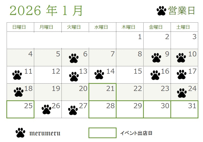 2026年1月の営業予定日です